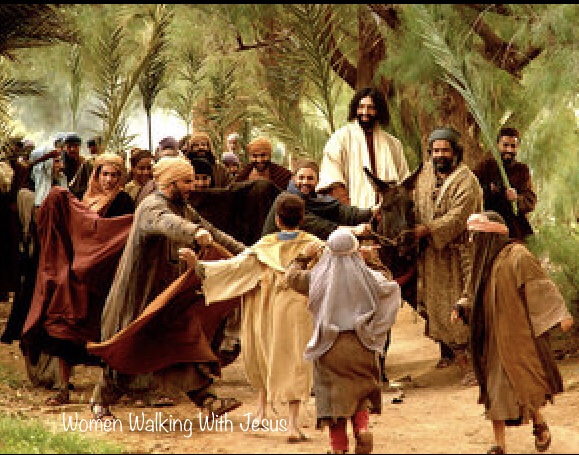 As Jesus rode the donkey into Jerusalem the crowd scattered palm branches in front of Him and the donkey that He had traveled on.